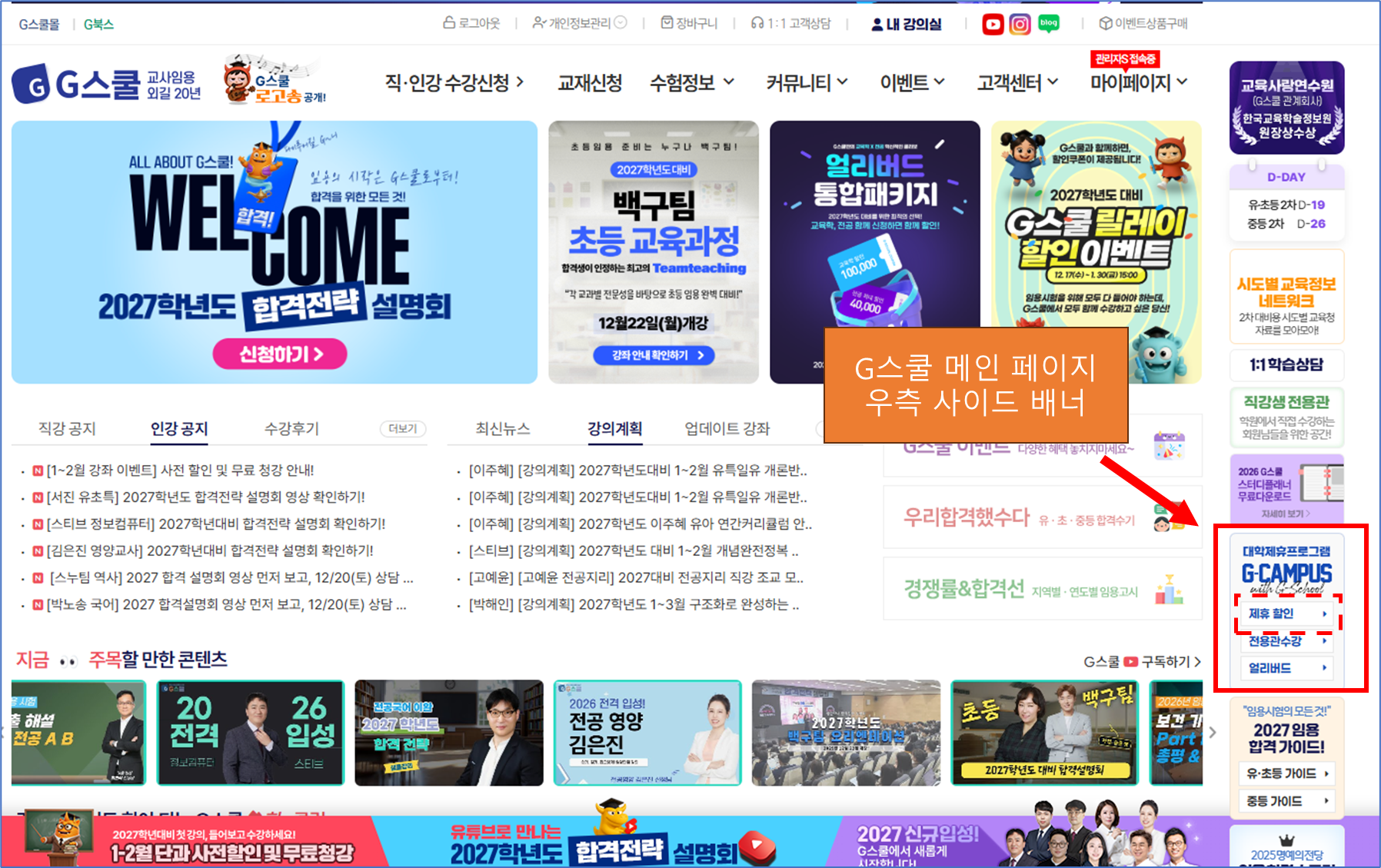 - 대학 제휴 할인은 G스쿨에서 진행되는 인터넷 강의에 한해 적용됨
