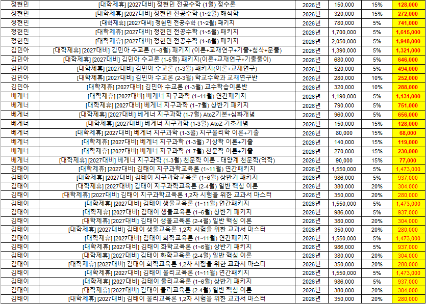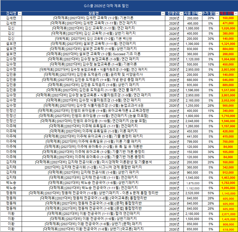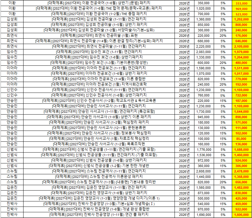 - 할인율은 전공과목별로 상이하며, 학원 사정에 따라 일부 과목 또는 강사진의 할인율이 변경되거나 제외될 수 있습니다.